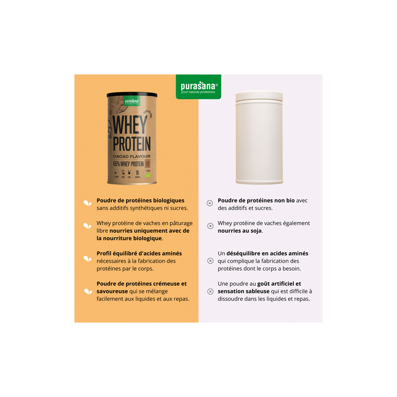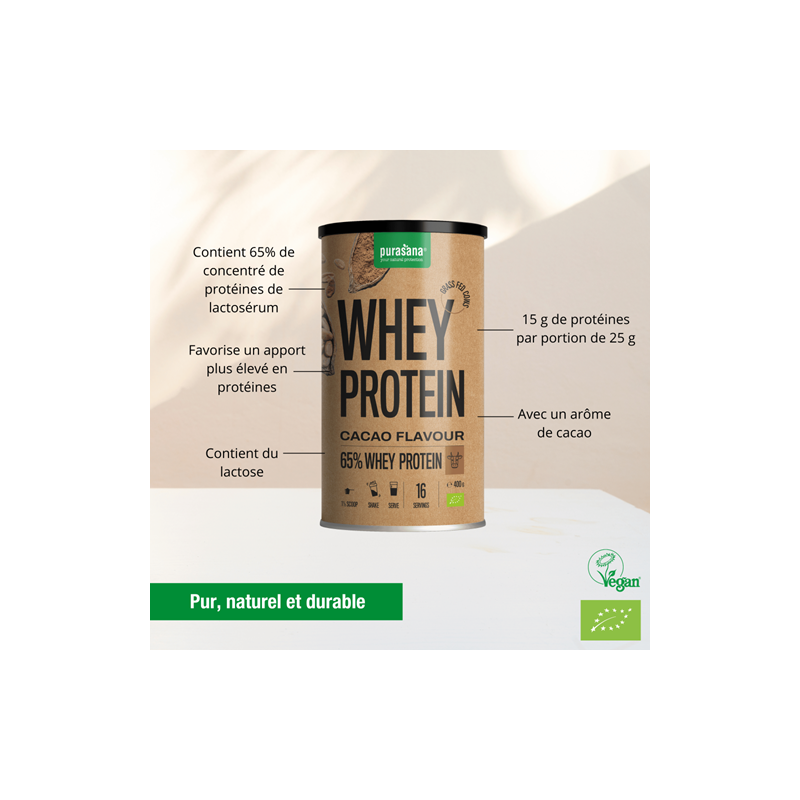 - Contient 65 % de concentré de whey petit-lait (16 g/25 g)