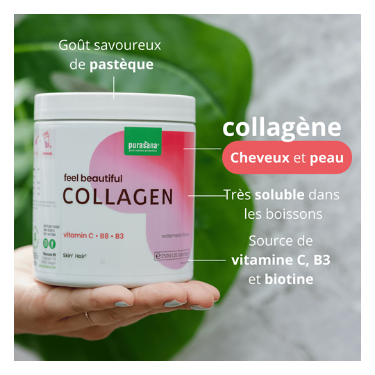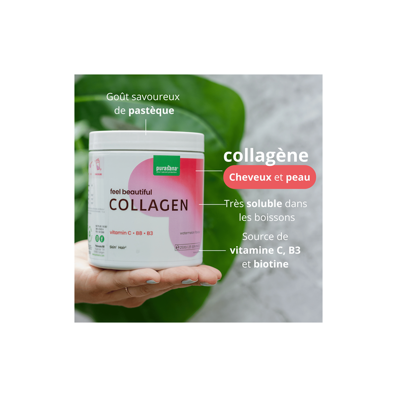 Collagène saveur pastèque avec Vitamine C, B3 et B8