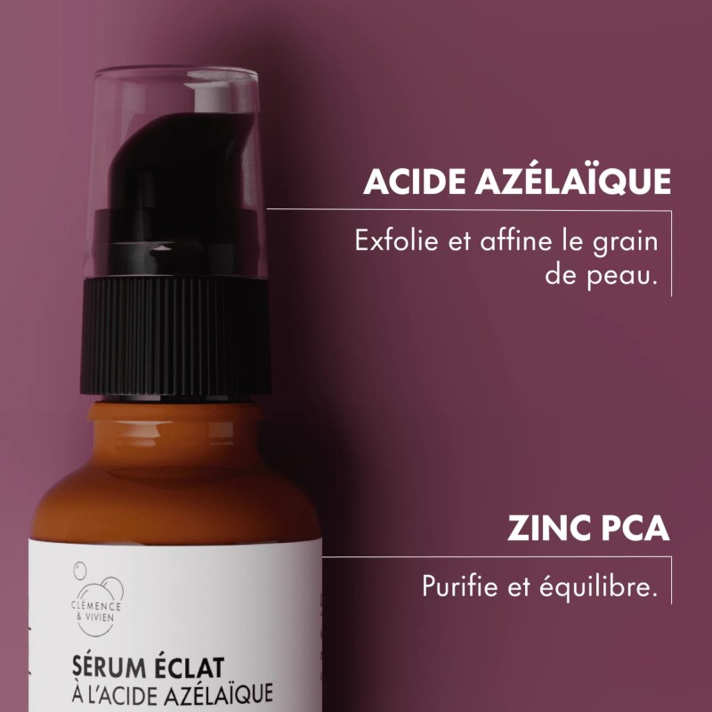 Avec notre Sérum éclat à l'acide azélaïque 10%, on vous propose d'agir sur tous les fronts :