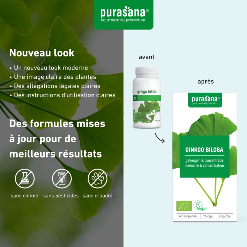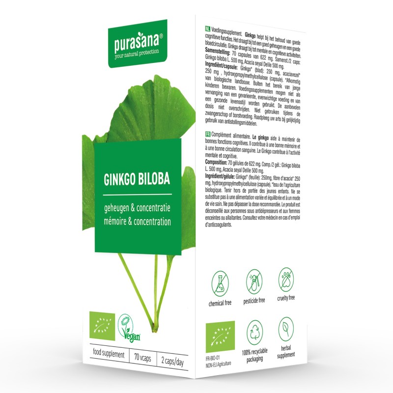 Ginkgo biloba Bio 250 mg - 70 gélules - Purasana