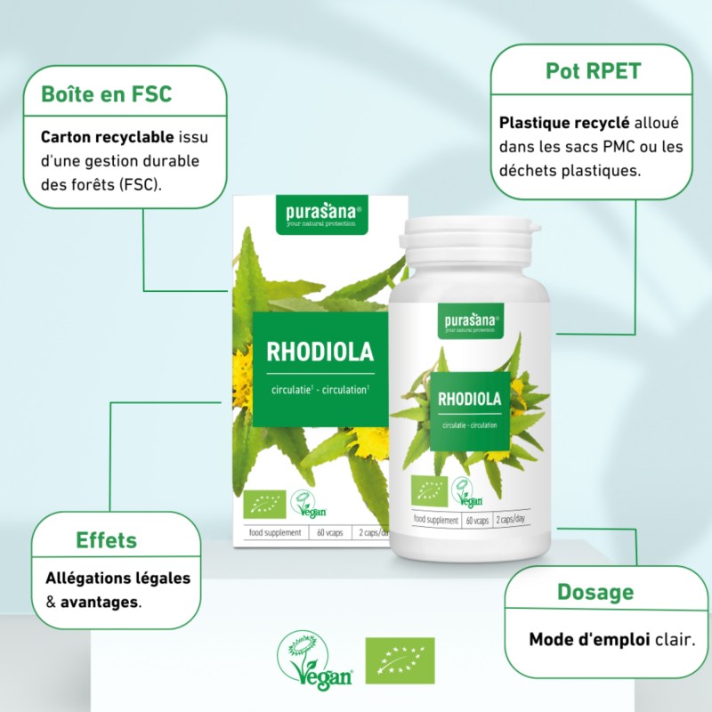 Rhodiola Bio 300 mg - 60 gélules - Purasana