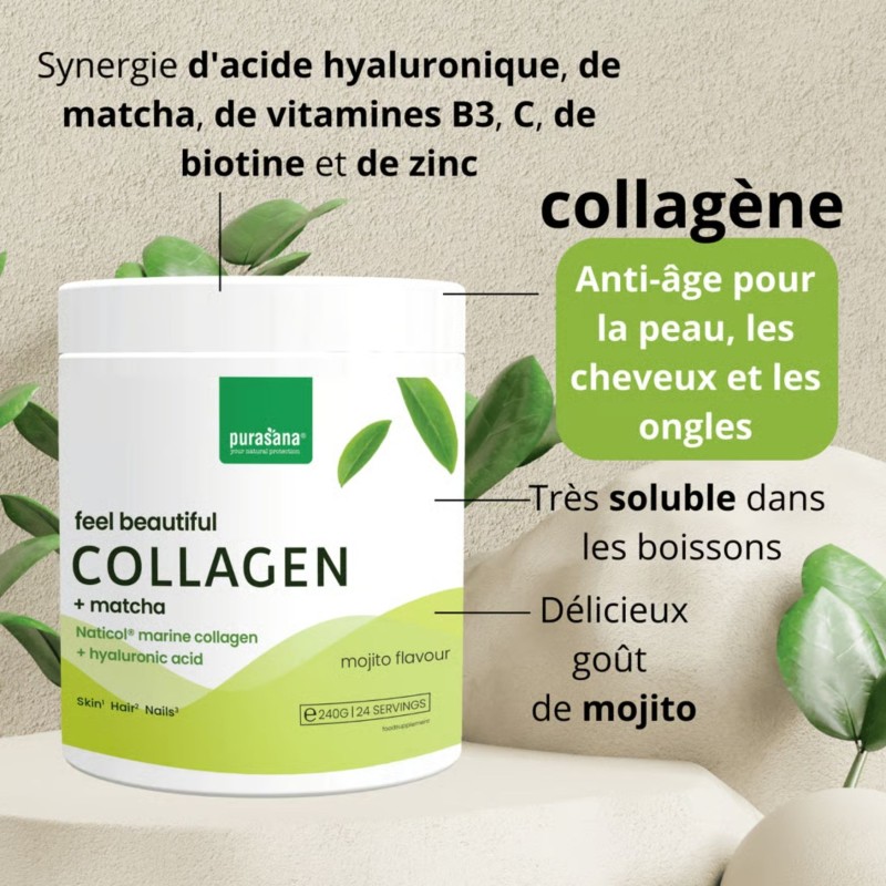 Enrichi en acide hyaluronique et poudre de matcha biologique