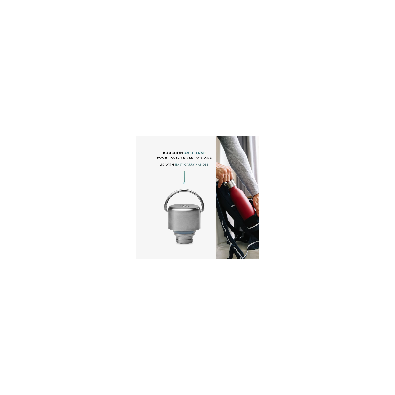 Ergonomique, sa anse en inox permet une utilisation facile au quotidien, que ce soit au sport comme au bureau.