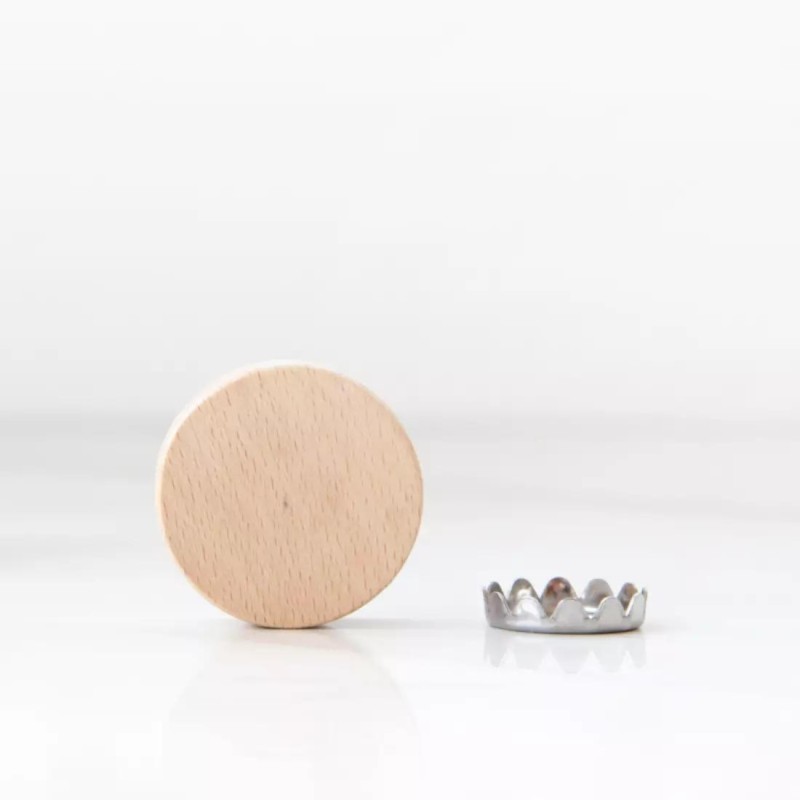 Support en Hêtre massif contenant un aimant puissant et une capsule à enfoncer dans le savon.