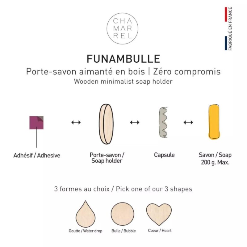 Fabriqué en France à partir de bois de hêtre issu de forêts gérées durablement, le porte-savon Funambulle s'inscrit dans une démarche écologique et responsable. En optant pour ce porte-savon, vous réduisez votre consommation de plastique jetable et contribuez à préserver l'environnement.