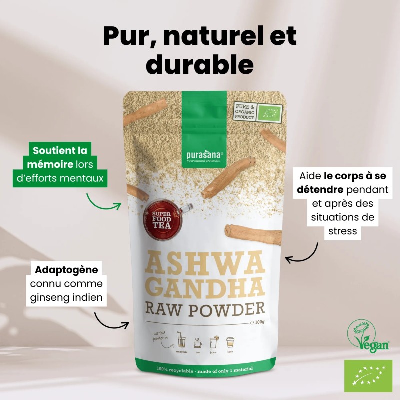- Ashwagandha 100 % biologique et végétalien