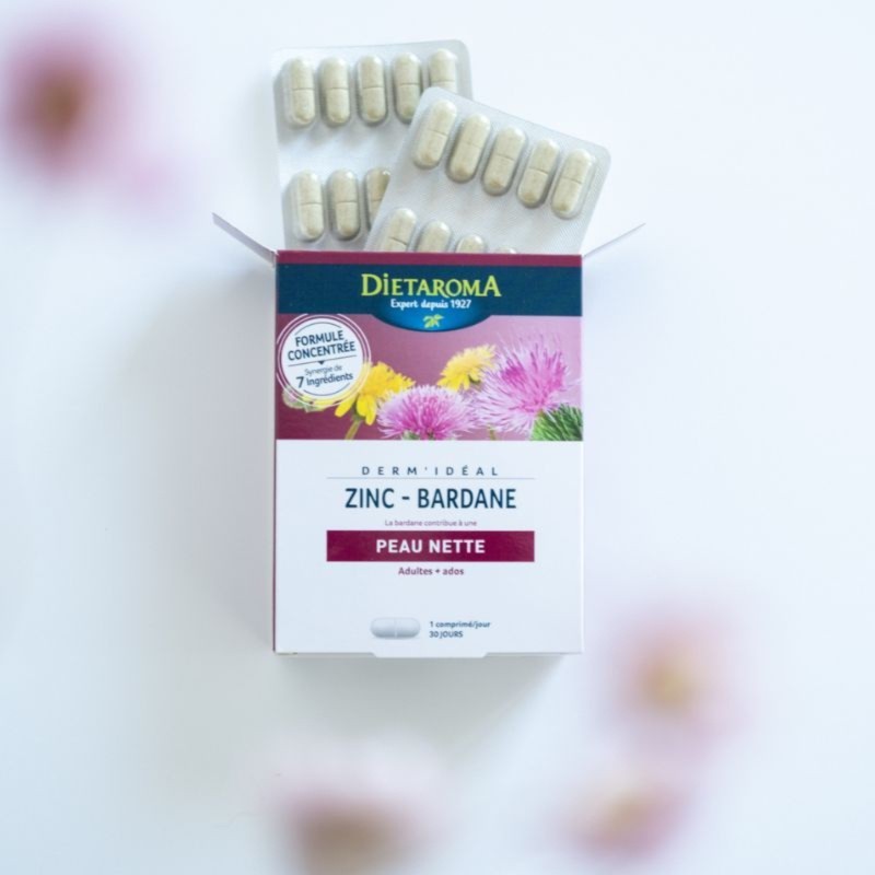 Derm'idéal (Dermidéal) - Zinc - Bardane - Peau nette - 30 comp - Dietaroma