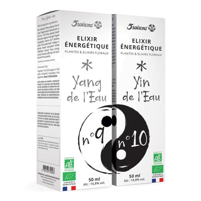 L'Elixir énergétique n°10 Yin de l'eau est conseillé en hiver, pour drainer et protéger les reins, ou en été, quand l'énergie des reins ne supporte pas la chaleur ou quand ils se congestionnent.