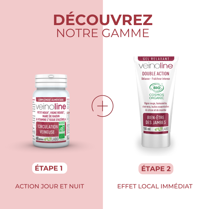 Femmes et hommes. En complément des bas ou chaussettes de contention. En association possible avec Veinoline gélules