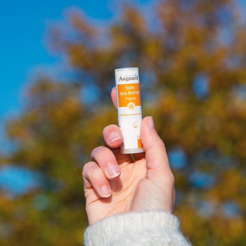 Le soin des lèvres Aagaard à la Propolis et au Karité convient parfaitement aux lèvres sèches, gercées et fendillées.